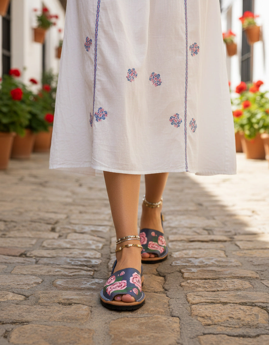 Menorquina Roses in Navy Blue